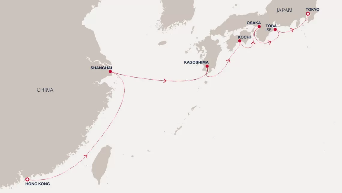 Маршрут круиза: Гонконг - море - Шанхай - Шанхай - море - Беппу - Коти - Осака - Тоба - Токио