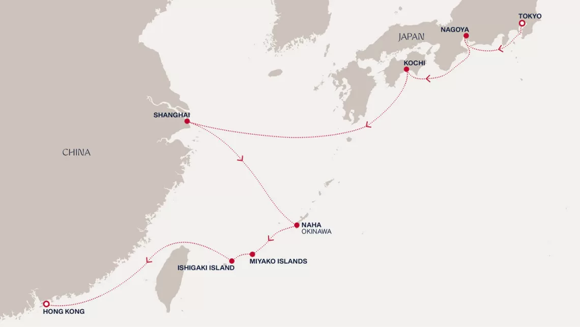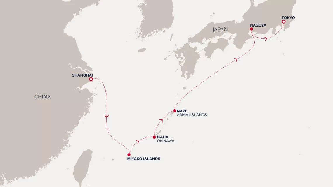 Маршрут круиза: Осака - море - о. Амамиосима - Ихея - о. Замами - о. Кумедзима - Миякодзима - Такэтомидзима - остров Ириомоте - о. Йонагуни - Цзилун - Исигаки, о-ва Сакисима