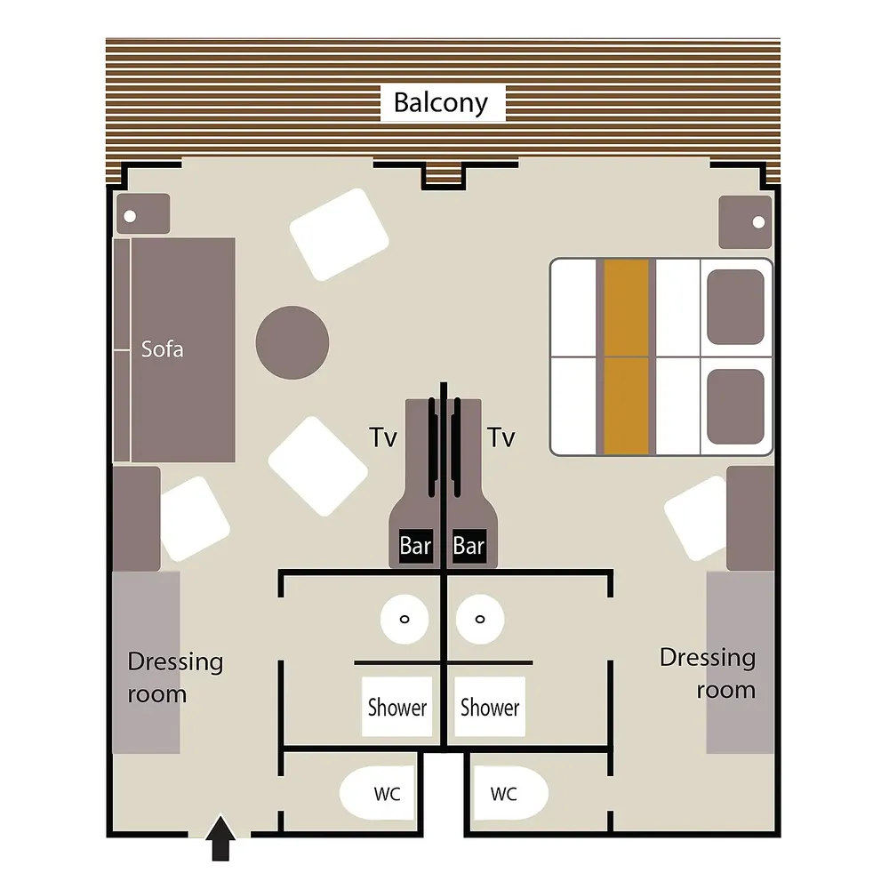 Площадь каюты: ~ 37 м2 (балкона ~ 8 м2)