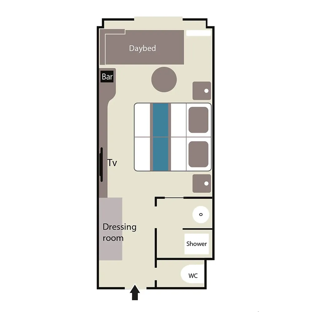 • Спальня с одной кроватью размера "king-size" (180 х 200 см) или двумя односпальными кроватями (90 х 200 см)