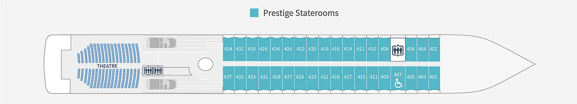 Расположение каюты можно посмотреть на плане палуб во вкладке "Круизный лайнер" на странице выше. Первые цифры номера каюты - номер палубы. Каюты отмеченные "для инвалидов" могут быть заменены MSC на каюту той же категории с другим расположением на лайнере без согласования с Клиентом.