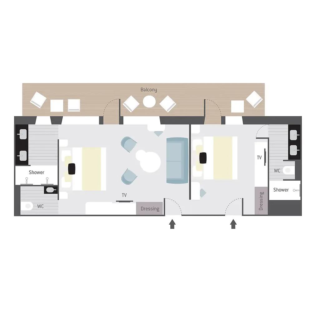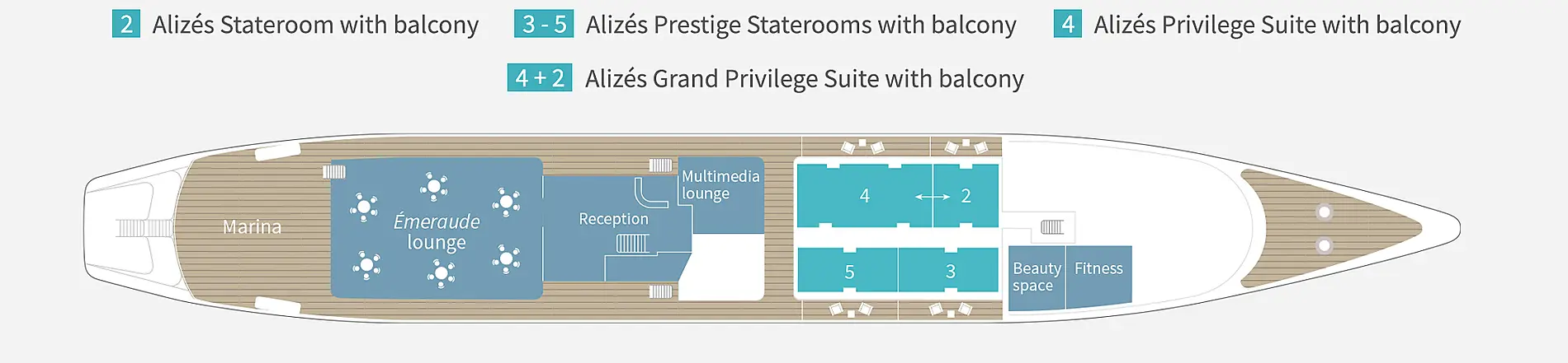 Площадь каюты: ~ 47 м2 (балкона ~ 9 м2)