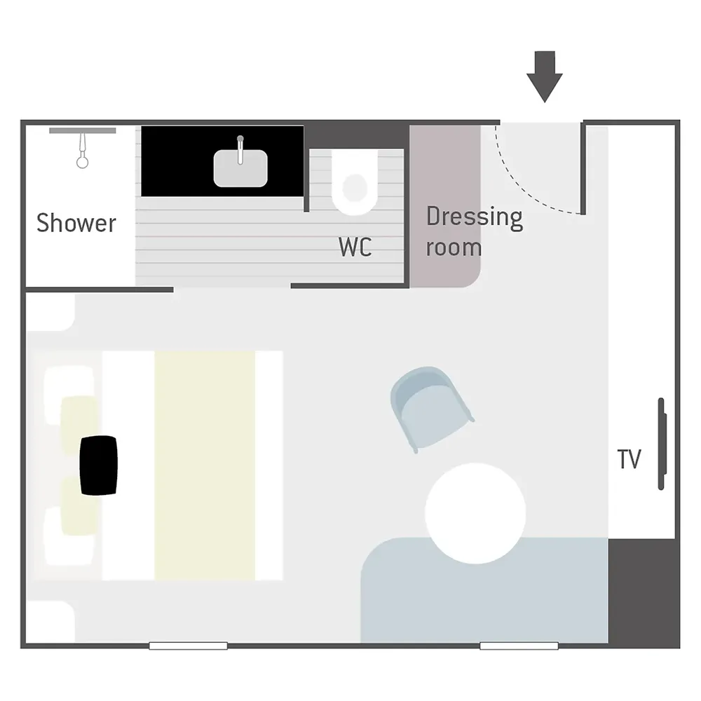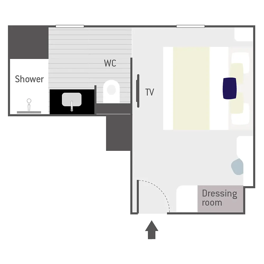 • Спальня с кроватью размера "king-size" (180 х 200 см) или двумя односпальными кроватями (90 х 200 см)
