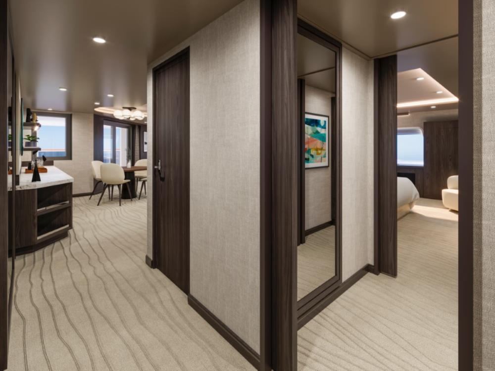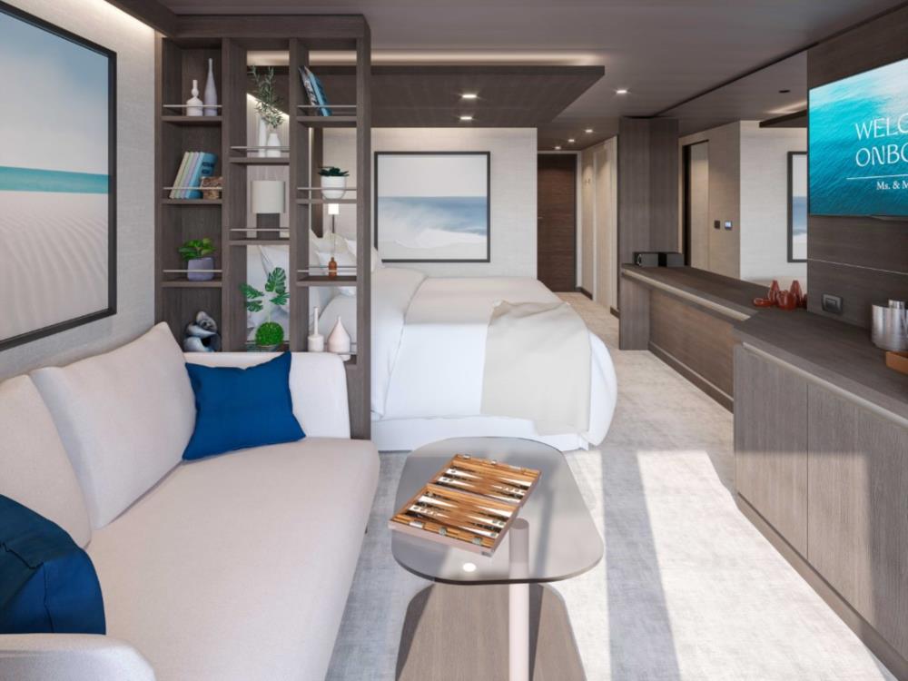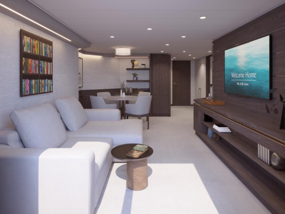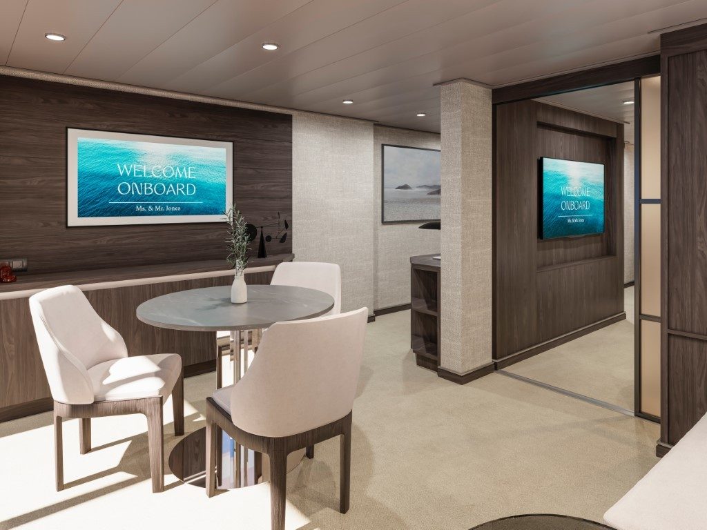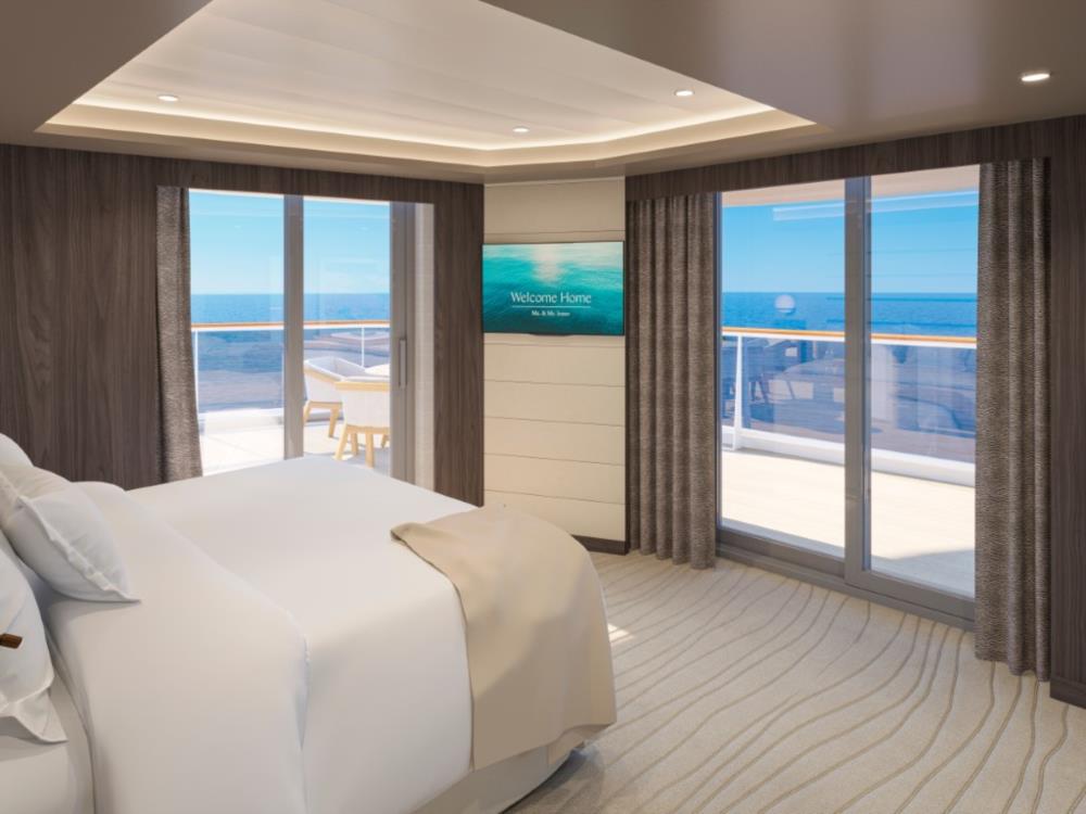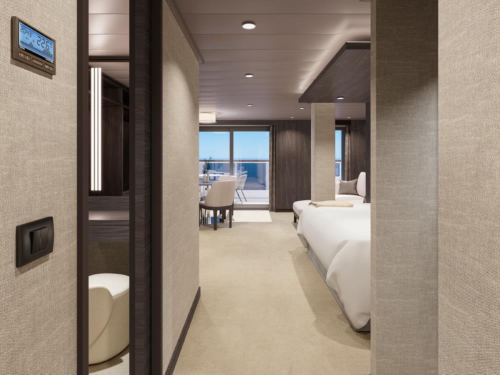 Гости EXPLORA II будут проживать в элегантных, просторных, обустроенных по самым современным стандартам комфортабельности сьютах, пентхаусах или резиденциях. Каждый из 461 люксов лайнера создан с целью максимального единения и связи с океаном, так называемые «дома в море» – все они с панорамными окнами с видом на океан и приватными террасами для принятия солнечных ванн.