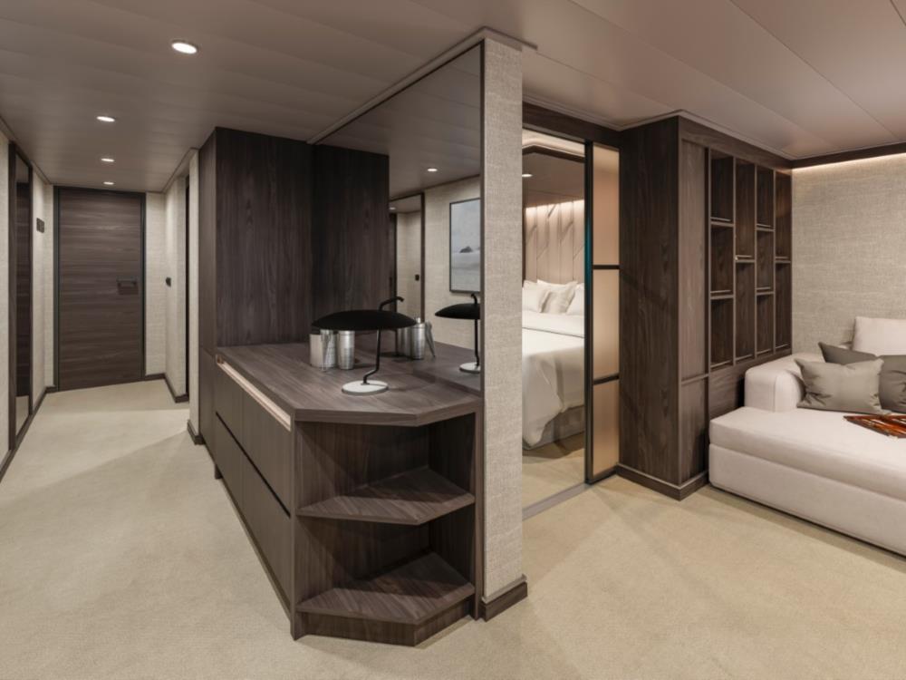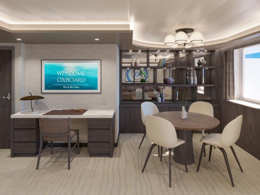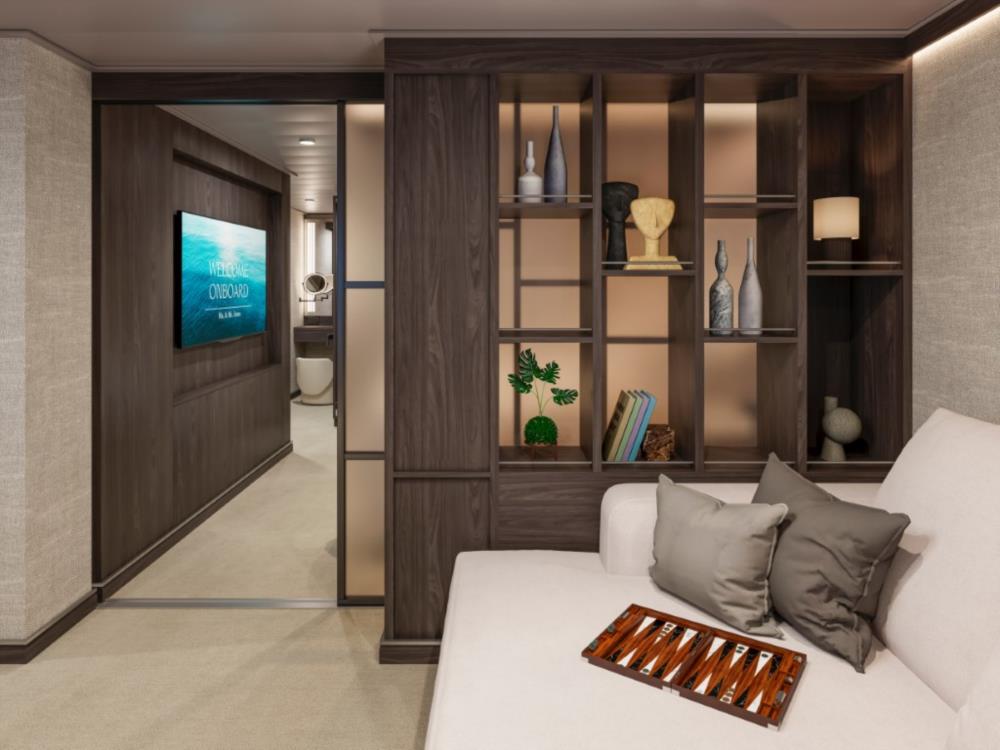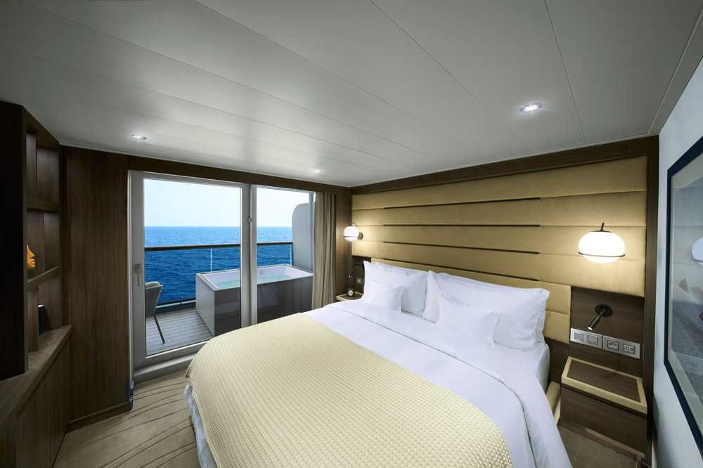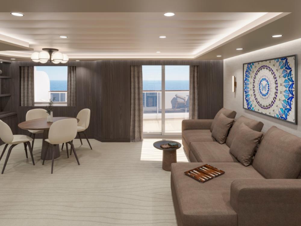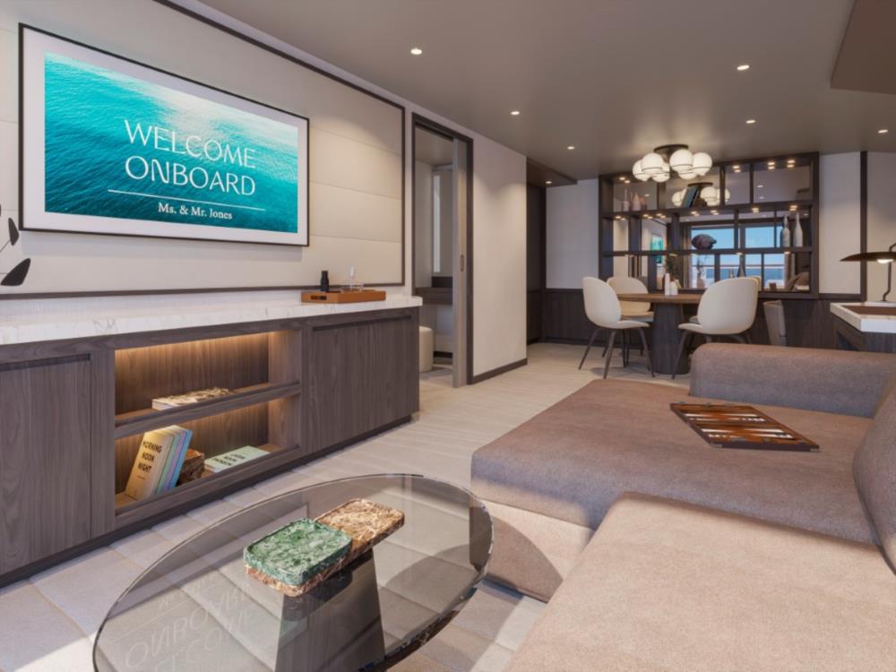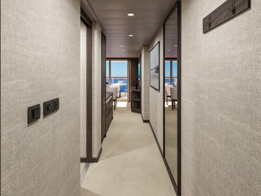 Гости EXPLORA II будут проживать в элегантных, просторных, обустроенных по самым современным стандартам комфортабельности сьютах, пентхаусах или резиденциях. Каждый из 461 люксов лайнера создан с целью максимального единения и связи с океаном, так называемые «дома в море» – все они с панорамными окнами с видом на океан и приватными террасами для принятия солнечных ванн.