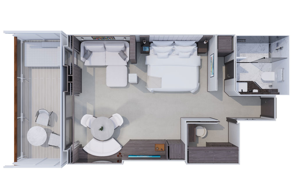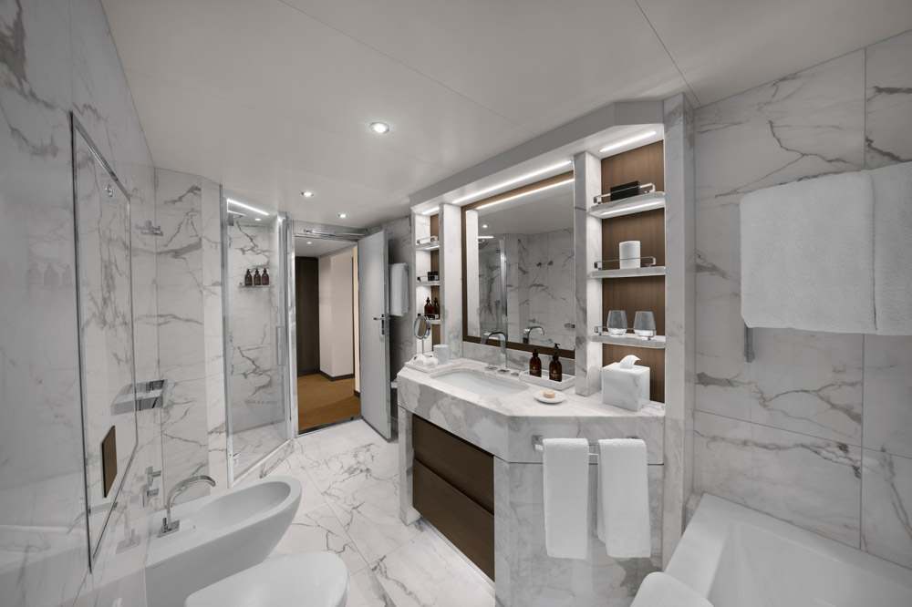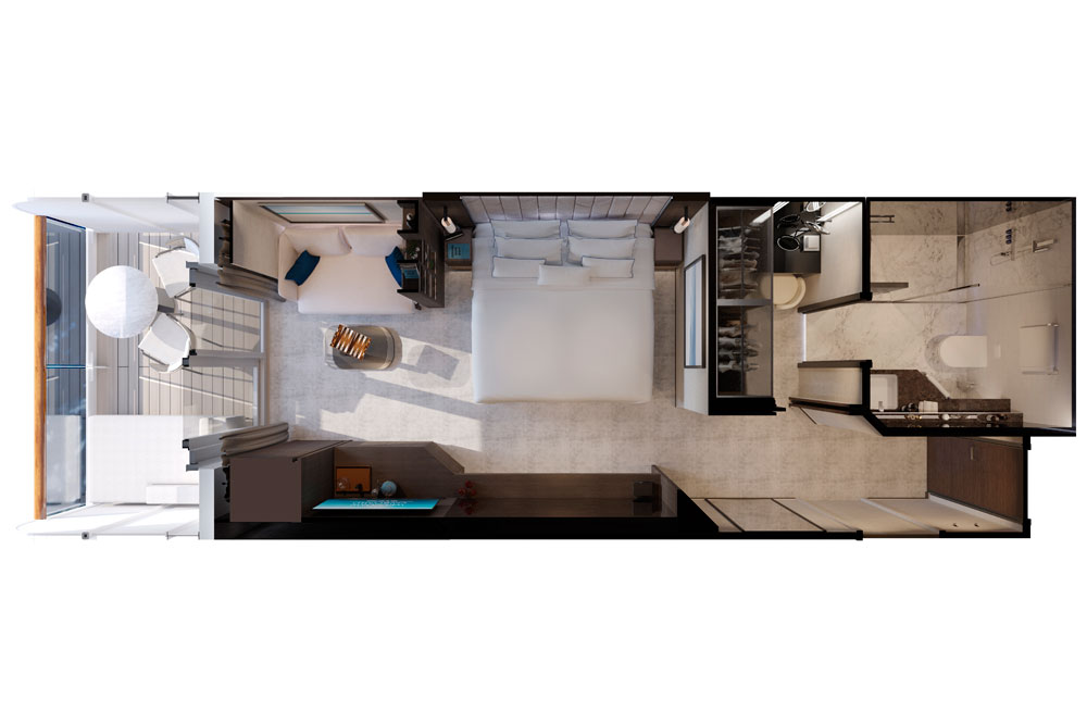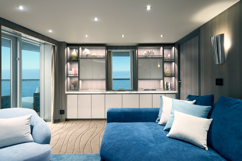 Площадь каюты: ~ 63 м2 (балкона ~ 14–18 м2)