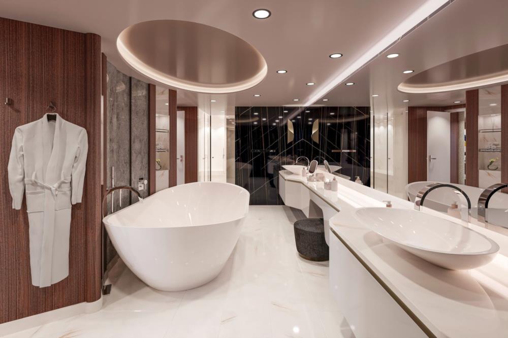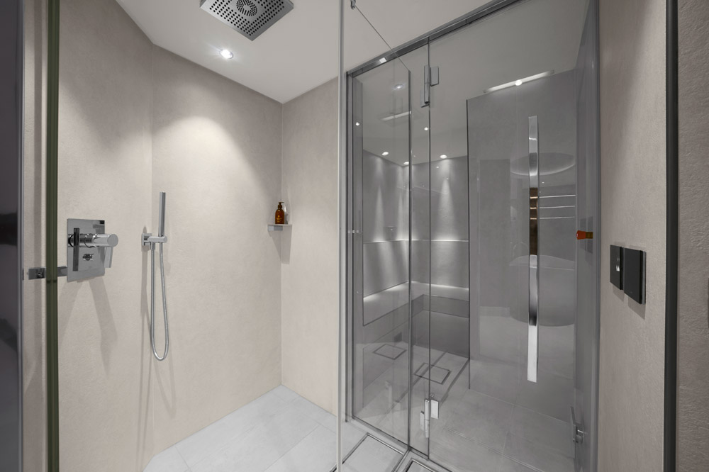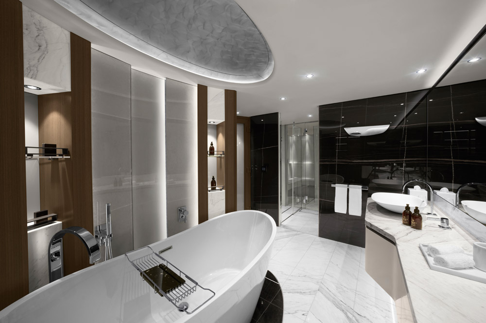 • роскошная мраморная ванная комната с подогреваемыми полами, ванной и душевой комнатой, персональной сауной;