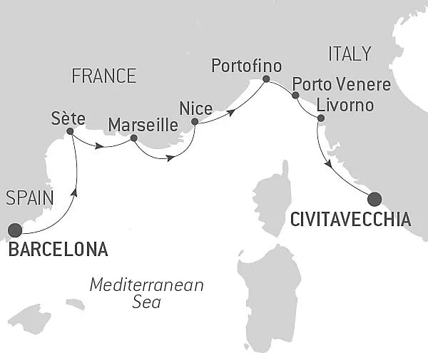 Маршрут круиза: Валлетта - Трапани, о. Сицилия - Палермо, о. Сицилия - Кальяри, о. Сардиния - море - Маон, о. Менорка - Пальма-де-Майорка - Барселона