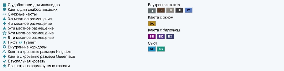 Расположение каюты: 4, 5, 6, 8, 9, 10, 11 палуба