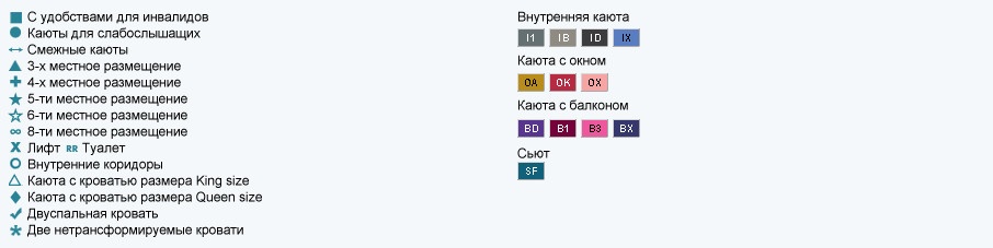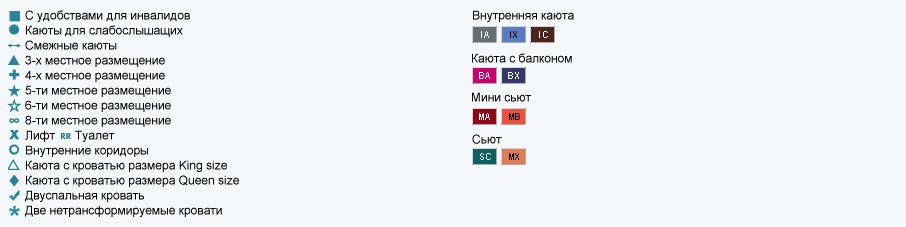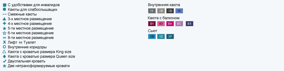 Расположение каюты: 4, 5, 8, 9, 10, 11, 12 палуба