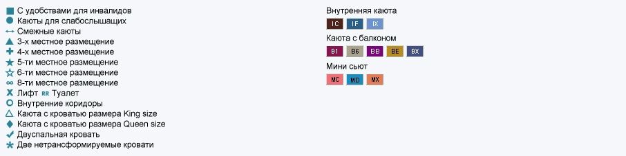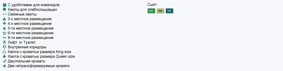 Расположение каюты: 8, 9, 10, 11, 12, 13, 14 палуба