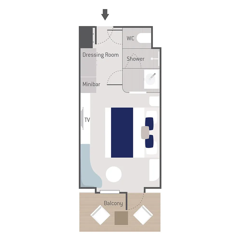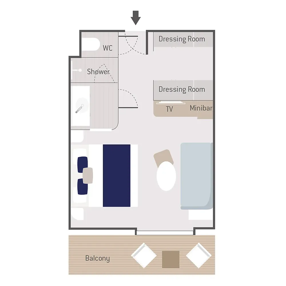 Площадь каюты: ~ 27 м2 (балкона ~ 6 м2)