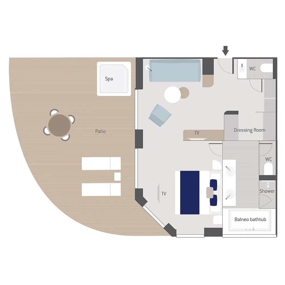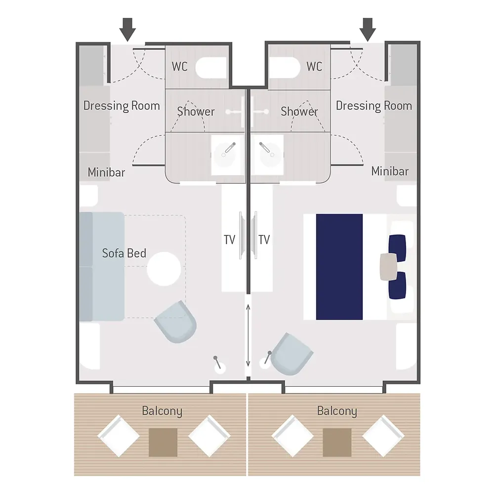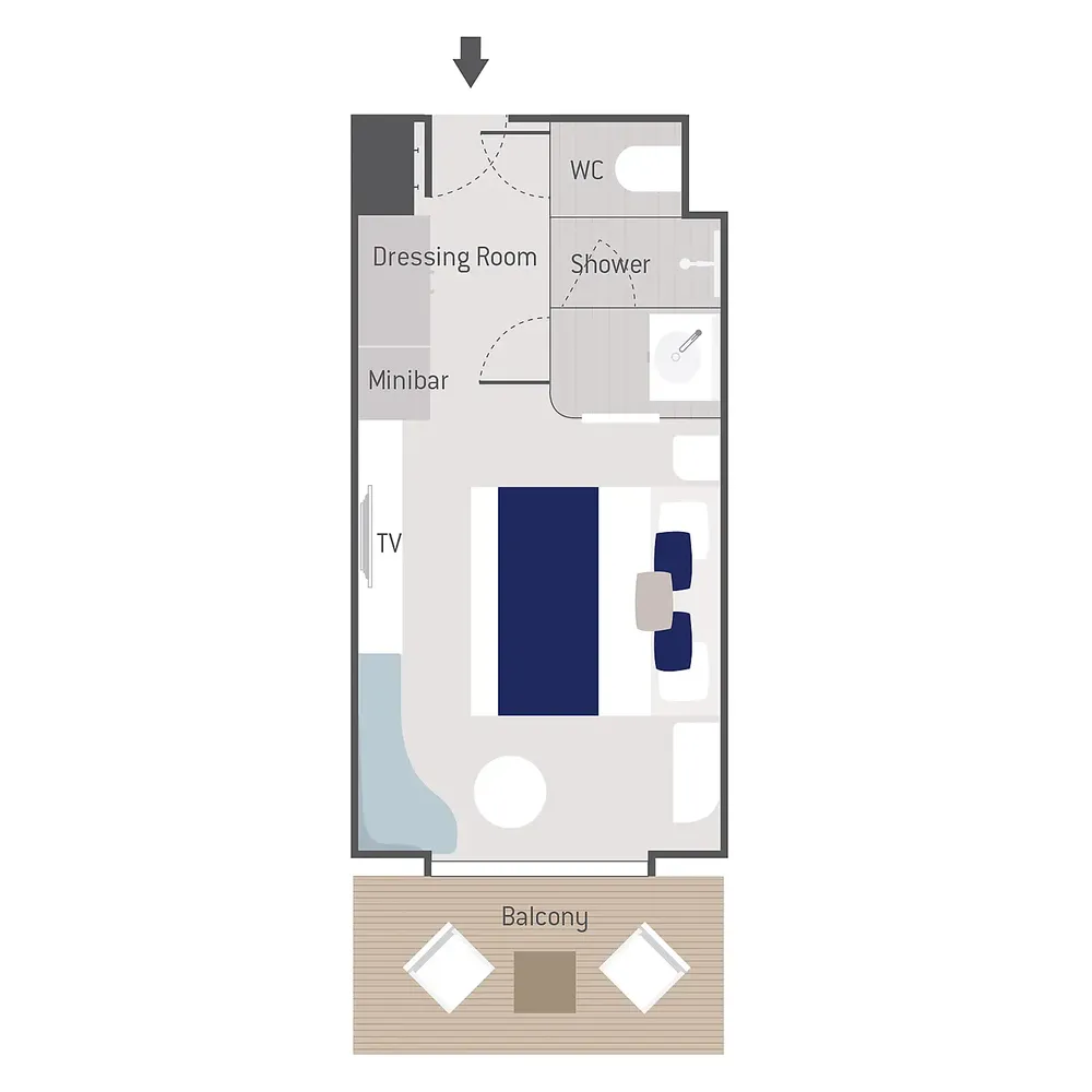 Площадь каюты: ~ 32 м2 (балкона ~ 8 м2)